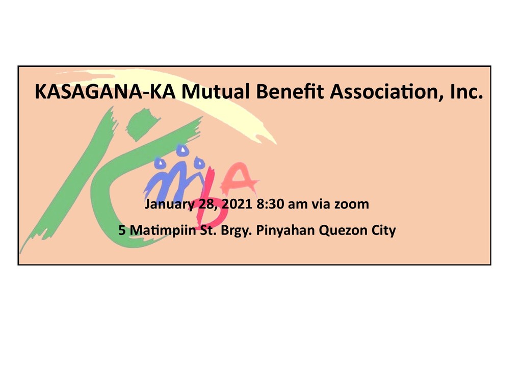 Greetings! KMBA will have its first (1st) Regular Board Meeting of the Board of Trustees for the year 2021 on January 28, 2021 via zoom. We are inviting everyone to join us to discuss the following matters set forth on the agenda. We will you the link together with the minutes of previous meeting for your review and comment.