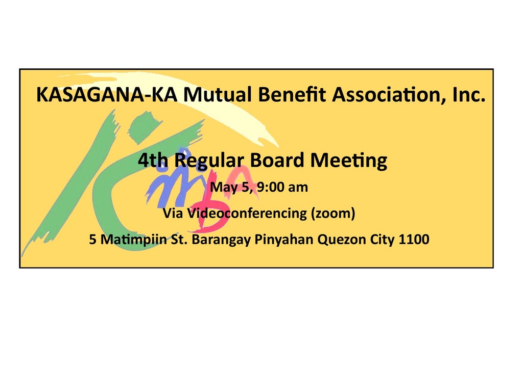 We would like to inform you that our 4th Regular Board Meeting will be held on May 5, 2022 via videoconferencing, zoom at 9:00 in the morning to discuss the following matters.
