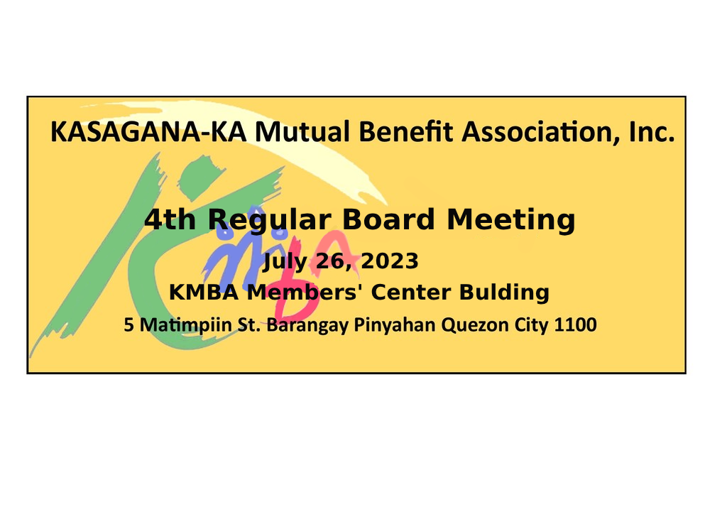 We would like to inform you that our 4th Regular Board Meeting will be held on July 26, 2023 at KMBA Memb... Read more...